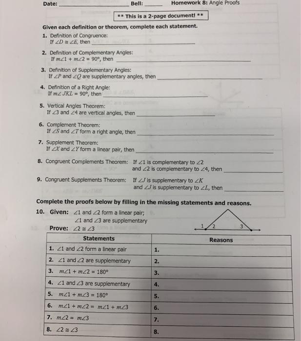 Solved Date Bell Homework 8 Angle Proofs This Is A Chegg Com